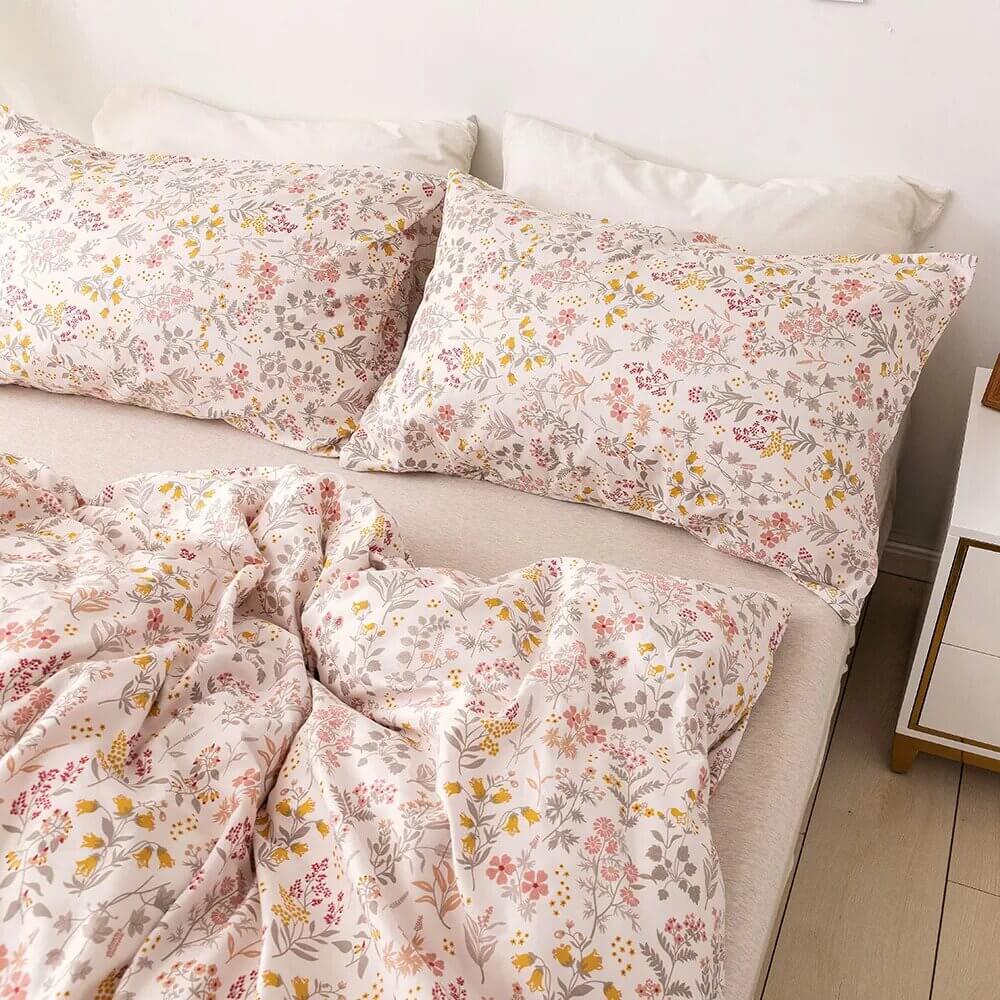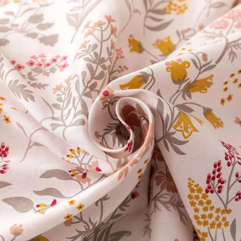 Funda Nórdica mini flor primavera. Disfruta de un estampado increíble que dará un diseño especial a tu dormitorio, con un estampado de mini flores alegres en colores rosas, mostazas y grises. Con esta funda nórdica de flores, 100% algodón 200 hilos, podrás dormir cómodamente con un estampado único y un tejido muy suave.