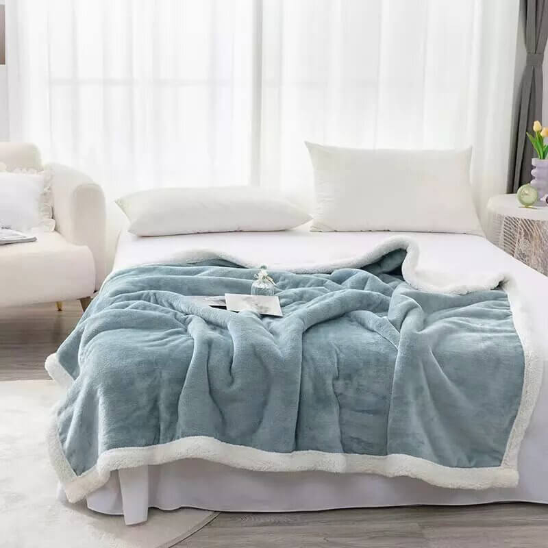 Manta borreguito reversible, una cara con tacto extra suave y otra cara con tejido borrego. El borde en toda la manta es de borreguito, teniendo un aspecto espectacular.